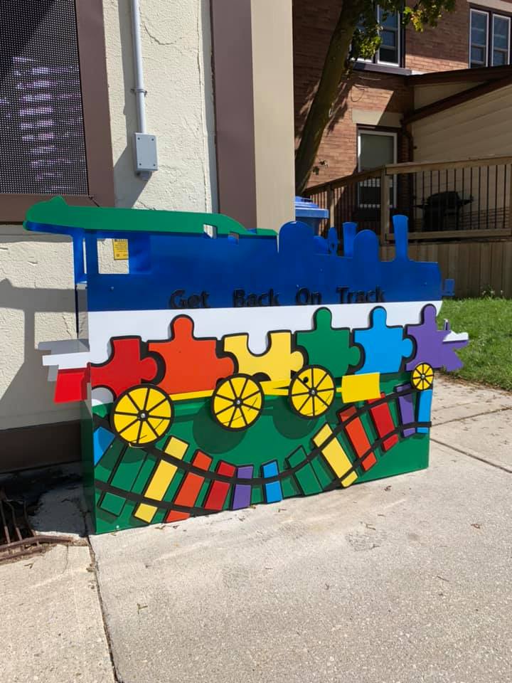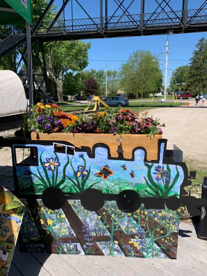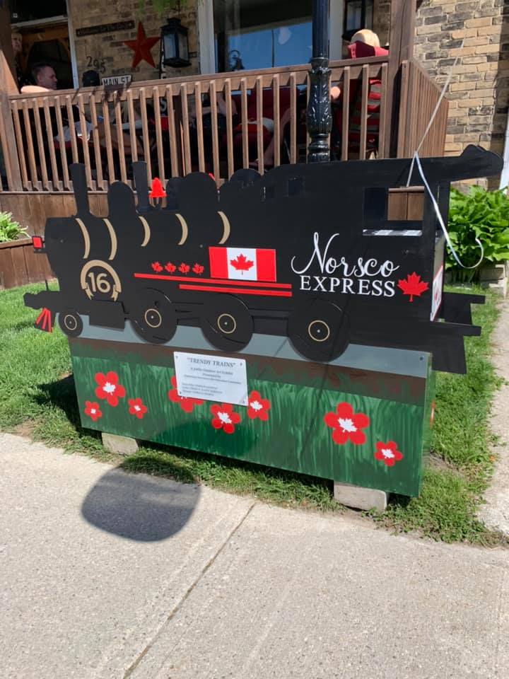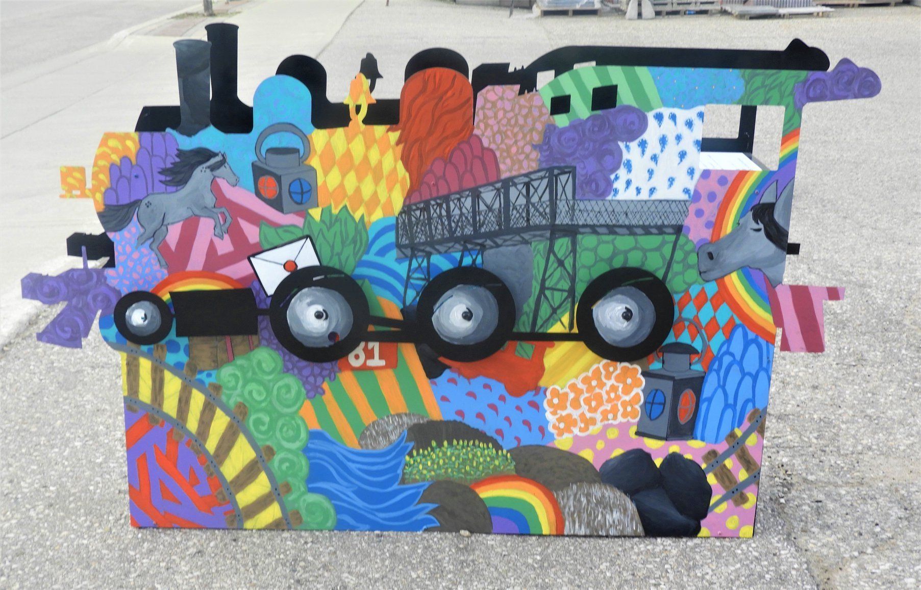 “Trendy Trains” is a public art project featuring 10 artists who have added their art and craftwork to a steel train sculpture, creating unique works of art to celebrate Palmerston’s local railway heritage.